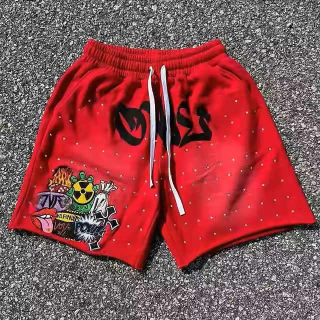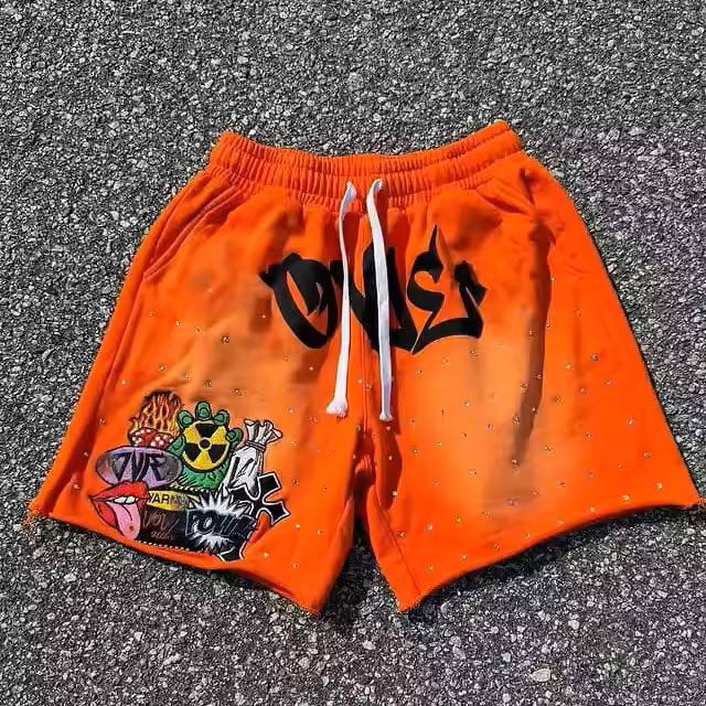 Cordón Puff estampado ropa de calle corta desgastado sol desteñido ácido lavado algodón francés Terry Fitness entrenamiento sudor pantalones cortos para hombres