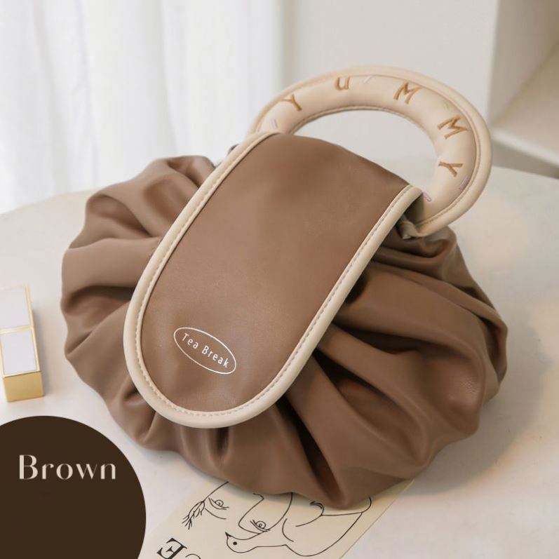 Bolsa de Maquillaje de Viaje de Cuero PU Impermeable con Diseño de Cordón y Asa de Lujo con Logotipo