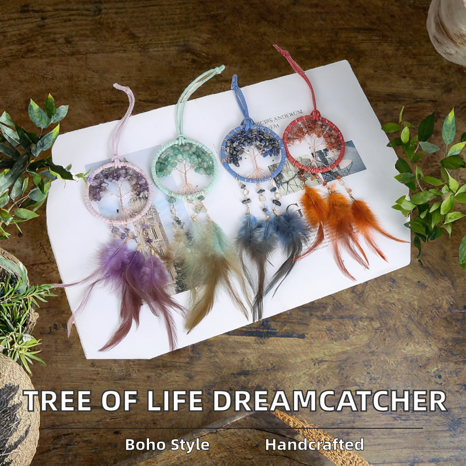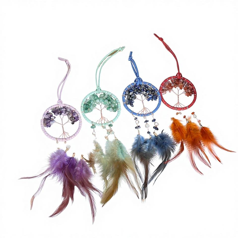 Atrapasueños Bohemio de Piedra para Espejo Retrovisor de Coche, Colgante de Pluma Natural y Árbol de la Vida, Decoración Colgante, Accesorios Hechos a Mano, Regalo