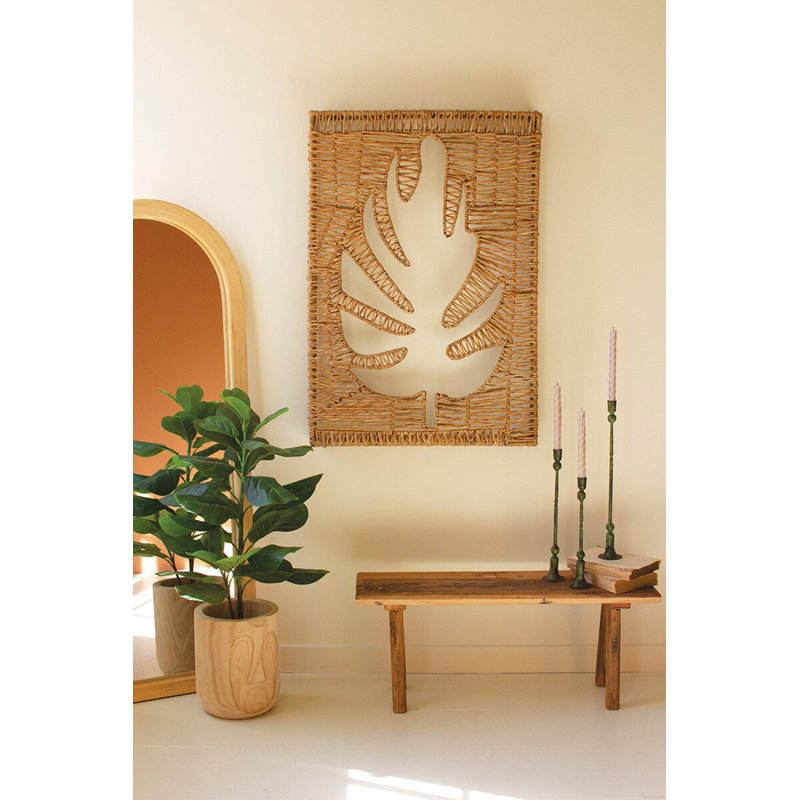 DreamCraft Breeze Woven Seagrass y Panel de pared de hoja de hierro Diseño intrincado para decoración del hogar