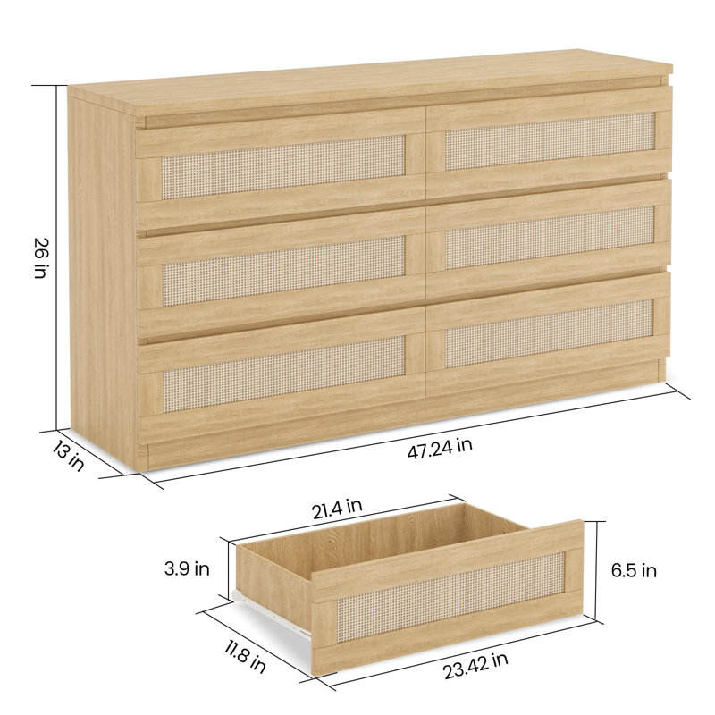 Cómoda de Ratán de 6 Cajones DreamCraft Vietnam, Muebles de Dormitorio Estilo Bohemio, Cómodas de Estilo Único