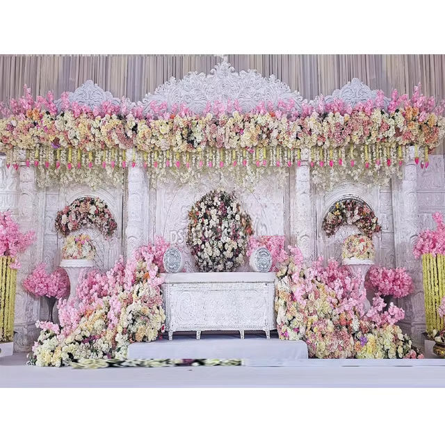 Name:Dreamy Wedding White Theme Crown Reception Stage