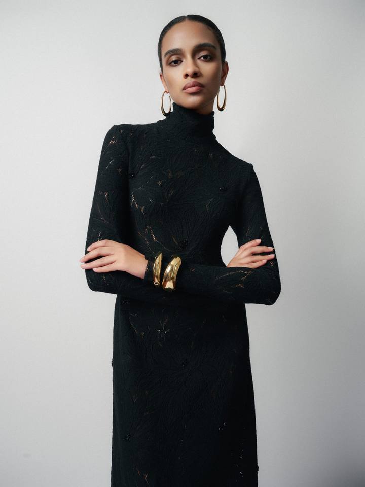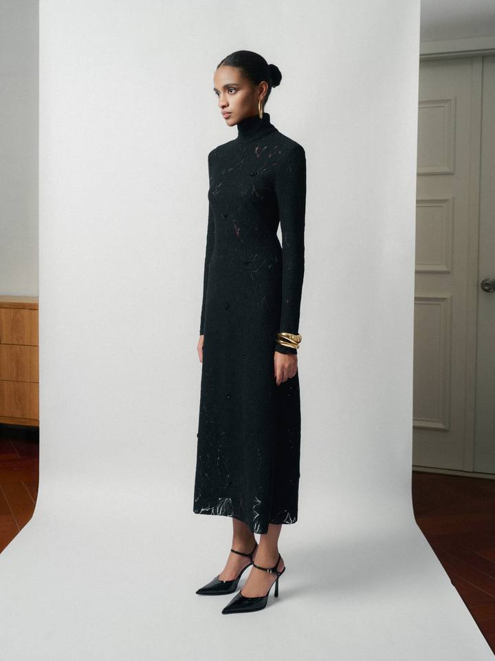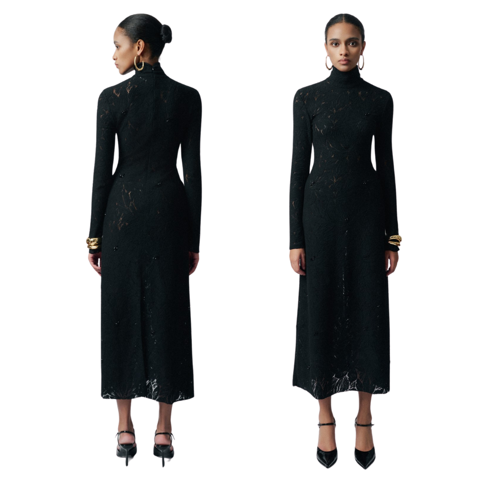 Vestido para mujer, precio al por mayor, vestido Midi de encaje Stella Emb cosido a mano, ropa de manga larga para mujer, ropa de mujer primavera 2025