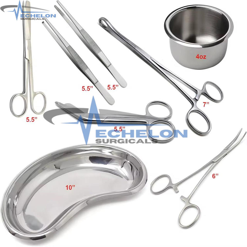 Kit de Instrumentos de Cirugía para Sutura - Tijeras de Sutura, Pinzas, Gallipot y Bandeja Renal, Juego de 8 Piezas de ECHELON SURGICALS