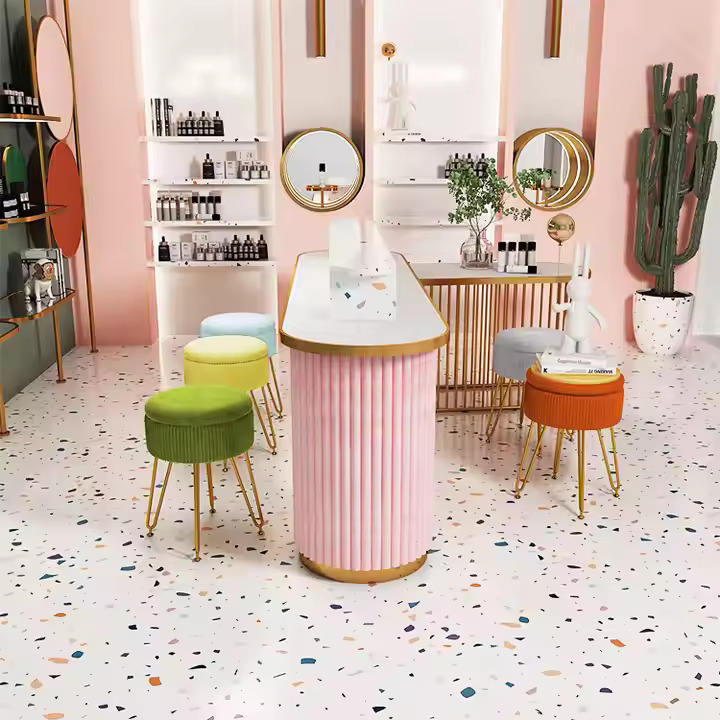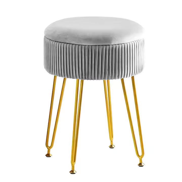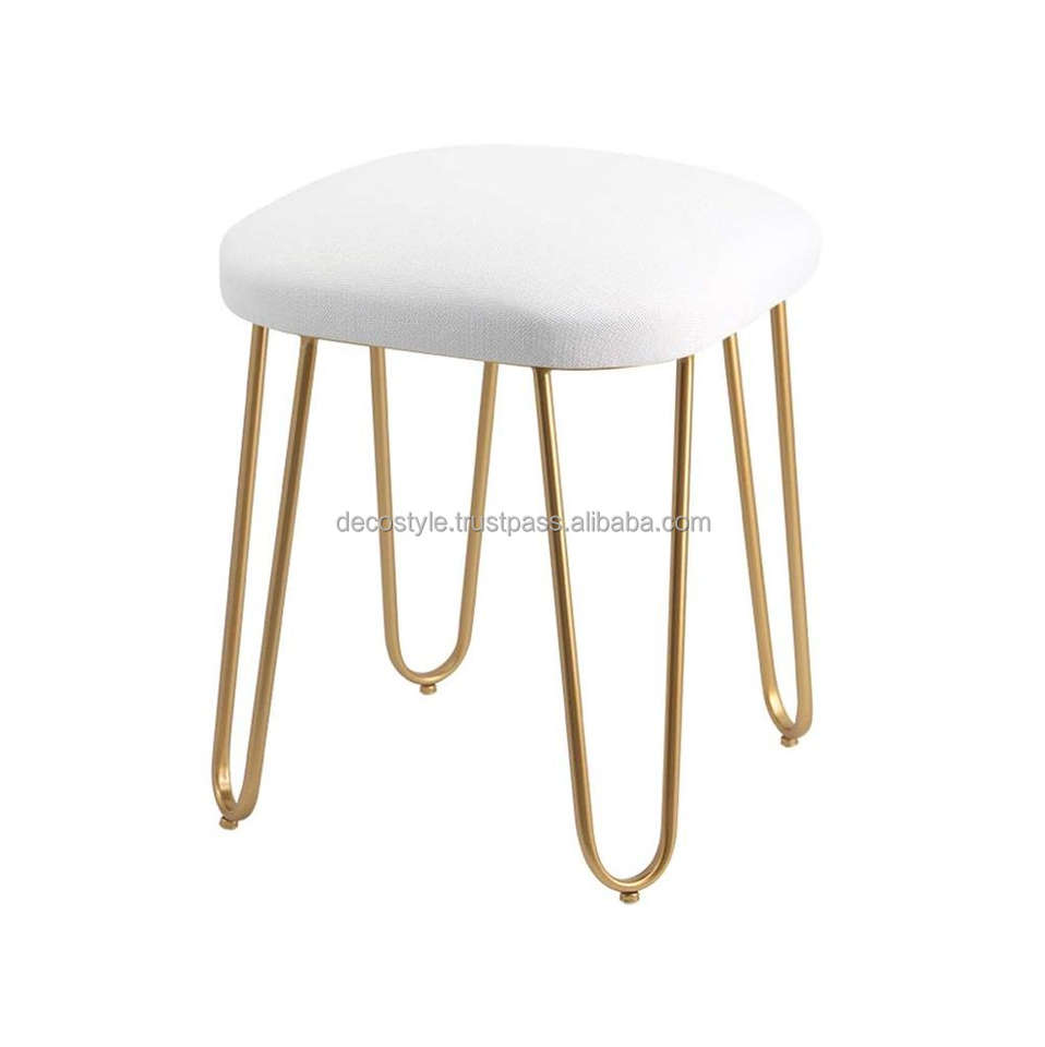 Taburete de tocador Taburete de pie de metal otomano Taburete de PUFs de terciopelo Base de latón Taburete de PUFs de terciopelo indio