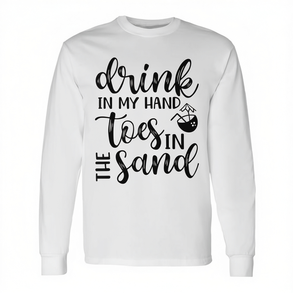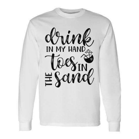 Camiseta de manga larga con estampado de "Drink In Hand Toes In The Sand", ropa para vacaciones en la playa