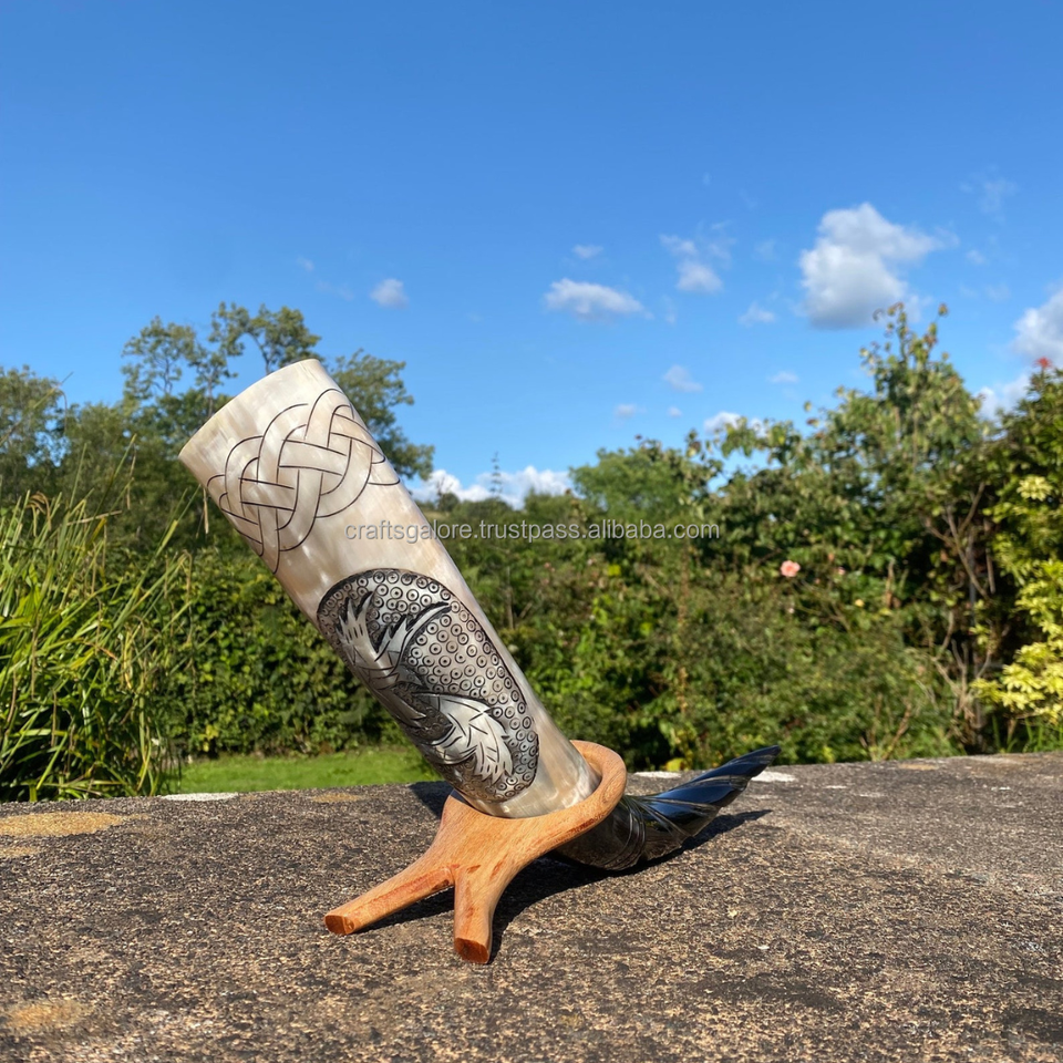 Cuerno para Beber Hecho a Mano Tallado en Cuerno Natural, Seguro para Alimentos, Apto para Celebraciones de Hidromiel y Cerveza, Recipiente Histórico Duradero
