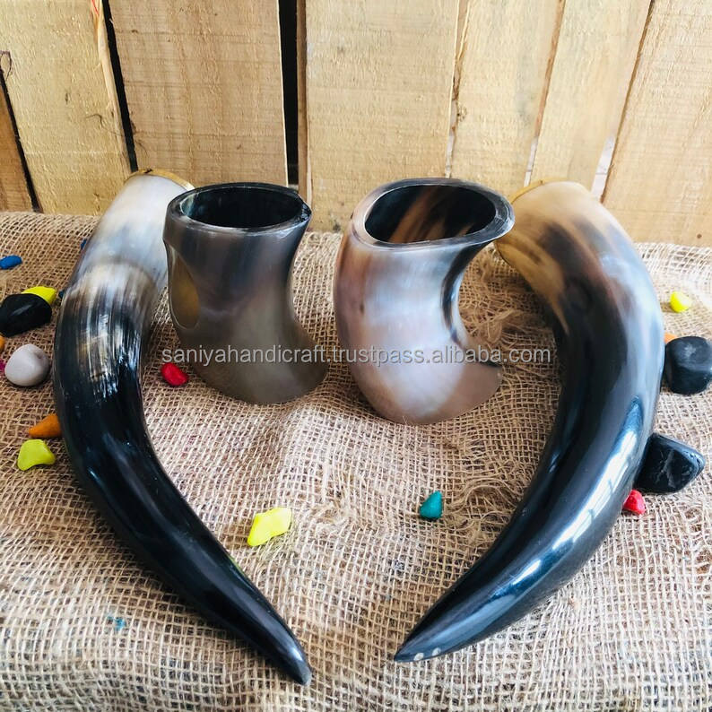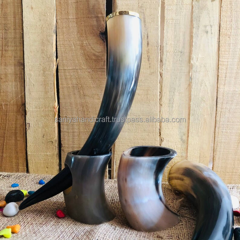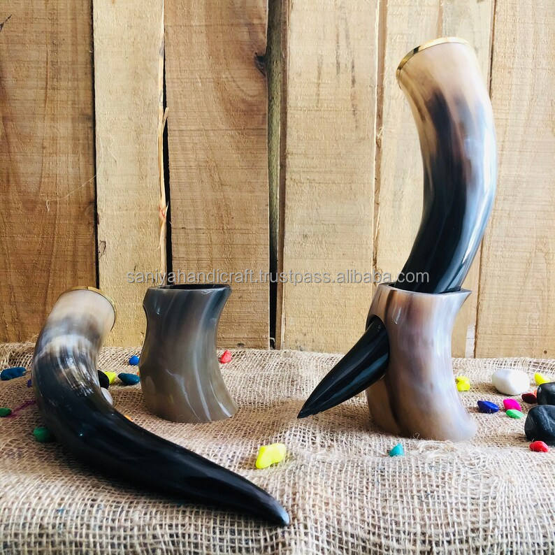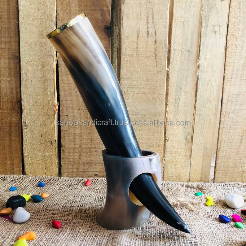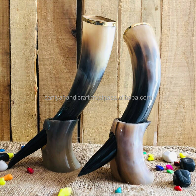 Product Name:Drinking horn with horn tankard stand with brass rim