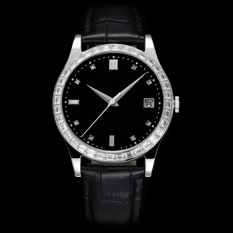 Reloj Mecánico de Lujo para Hombre y Mujer, con Bisel de Diamantes, Calendario, Movimiento 324, Correa de Cuero, Envío Directo, Alta Calidad
