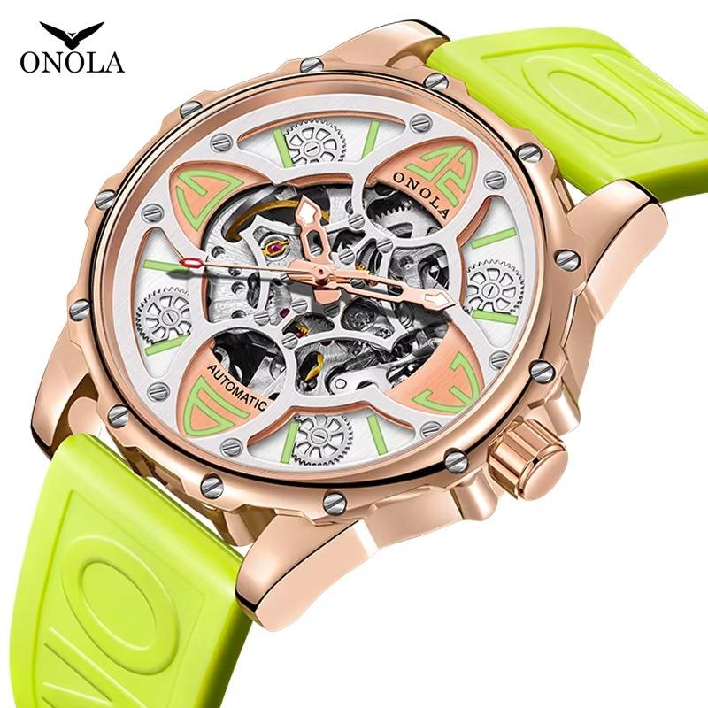 Reloj Mecánico Automático para Hombre, Diseño Hueco Único, Correa de Silicona, Resistente al Agua, Cronógrafo, Envío Directo