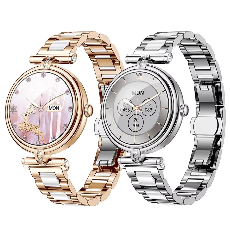 Drioshipping Reloj inteligente de moda de lujo para mujer Pantalla de 1,09 pulgadas Monitoreo DE SALUD BT Call IP68 Acero impermeable Silicona Metal
