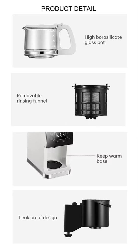 Cafetera de goteo Máquina de café americana con molinillo incorporado Tanque de agua de 780ml Mantener caliente Cafetera Encimera