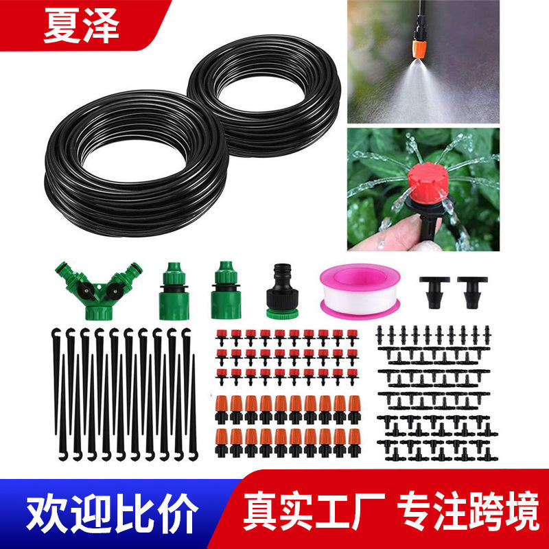 Juego de riego por goteo, tubo de PVC de 30m, 1/2 pulgada, para macetas de balcón, sistema de riego automático, fácil instalación