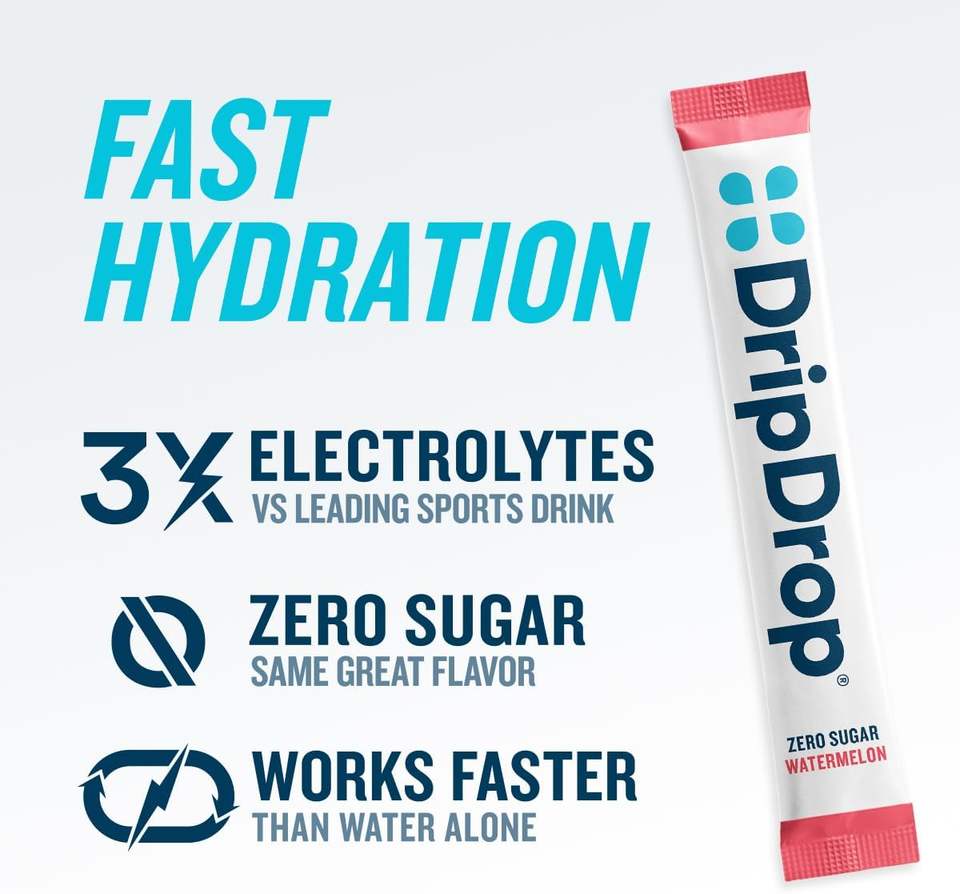 Paquetes de Hidratación Sin Azúcar DripDrop - Sabor Clásico Variado: Limón-Lima, Sandía, Melocotón, Fruta de la Pasión - 32 Sobres