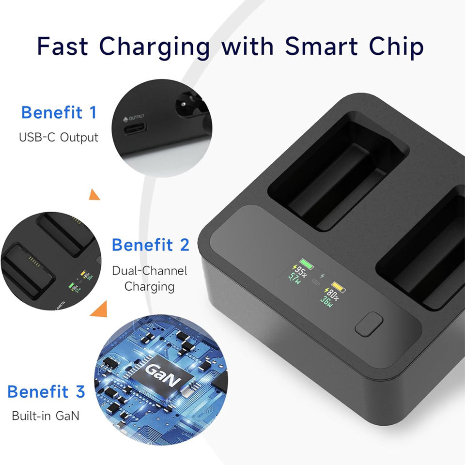 Cargador de Batería para Dron Mini 3/4/5 Pro, Centro de Carga Rápida de 72W con Doble Puerto, Carga Paralela de 36W + 36W, Control por Aplicación, GaN Integrado