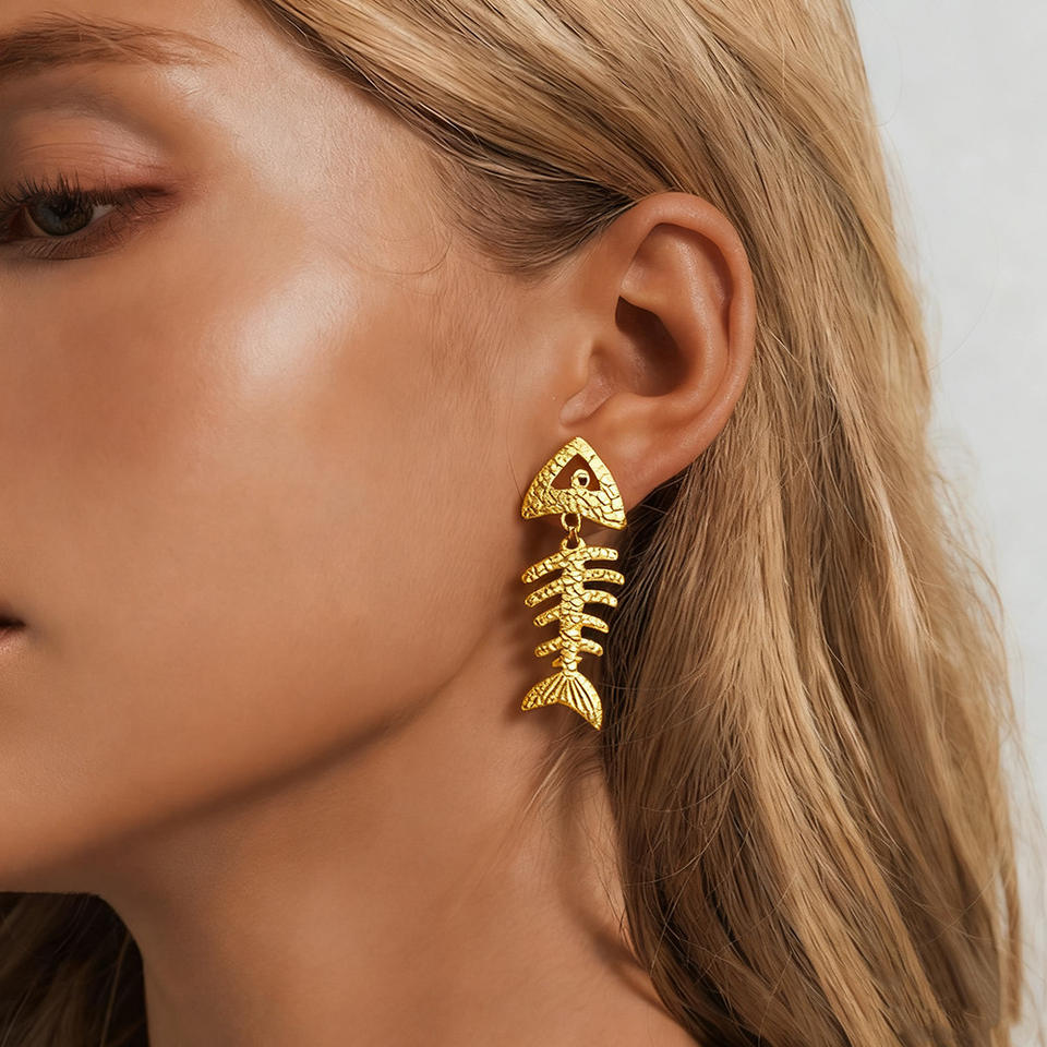 Pendientes Colgantes con Diseño de Espina de Pescado, Chapados en Oro de 18k, Acero Inoxidable, Perla y Concha, Estilo Vintage, Joyería de Moda