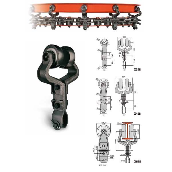 Cadena y carro sin remache forjado por caída X678 X458 X348 Cadena transportadora aérea para línea de pintura
