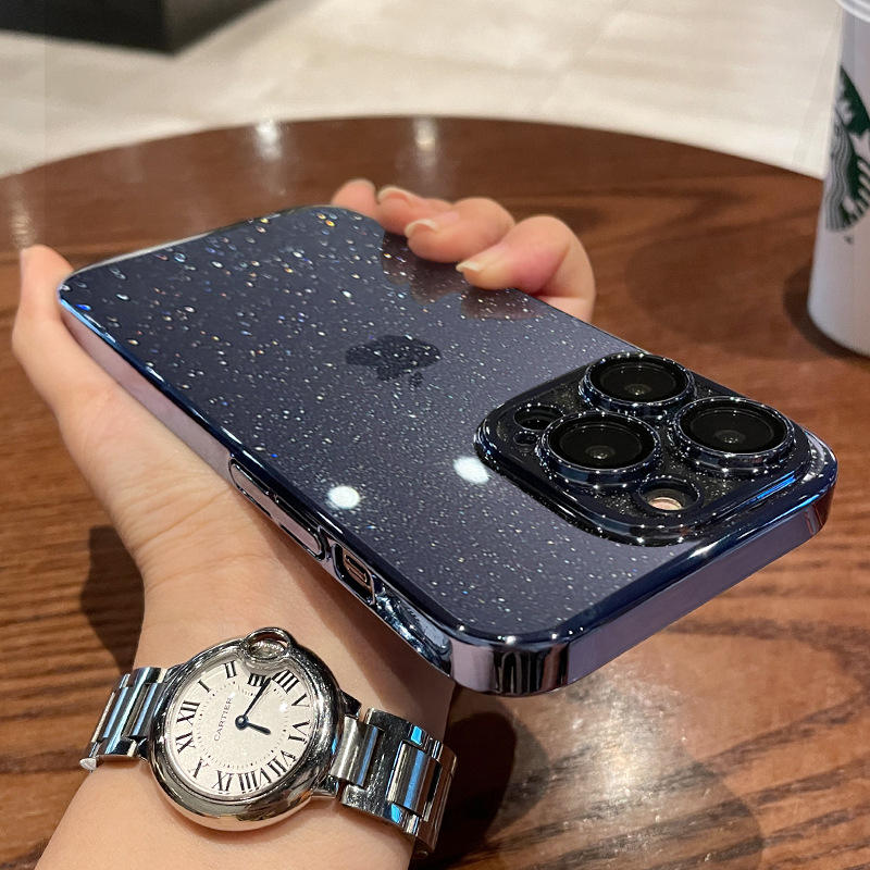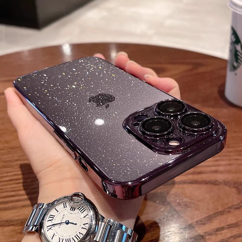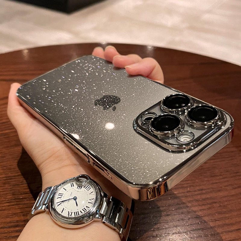 Carcasa rígida protectora de PC resistente a caídas para iPhone 16 Pro Max, nueva funda electrochapada con purpurina, compatible con iPhone 15 y 12 Pro Max