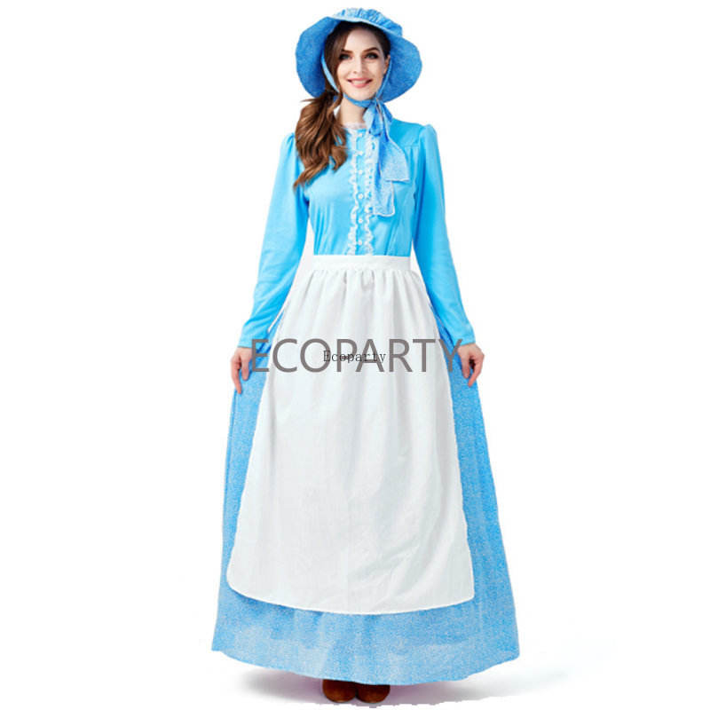 Disfraz de Laura Ingalls Wylde de la Casa de la Pradera para Mujer, Carnaval, Halloween, Estilo Pionero, Vestido de Fiesta de Disfraces
