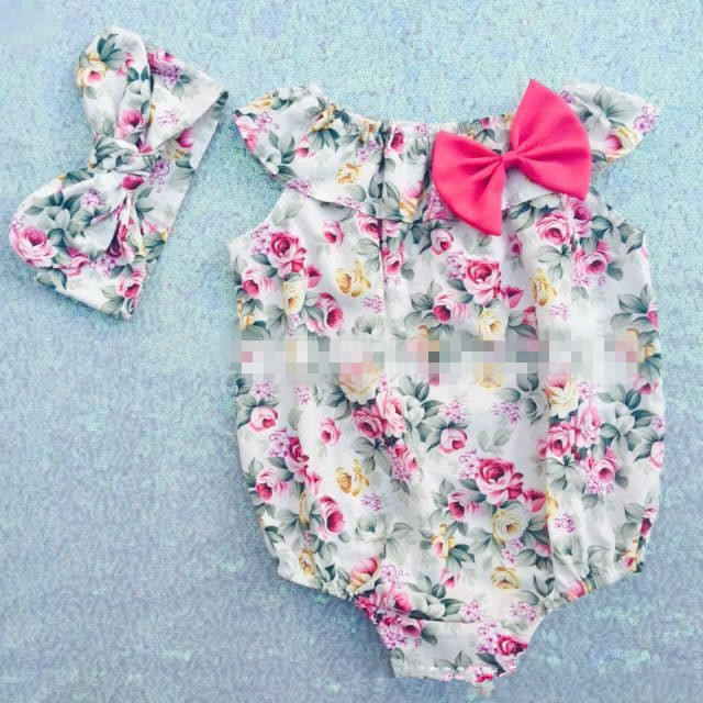 Conjuntos de Ropa de Dos Piezas para Bebés: Diademas Coloridas y Peleles Estampados para Envío Directo