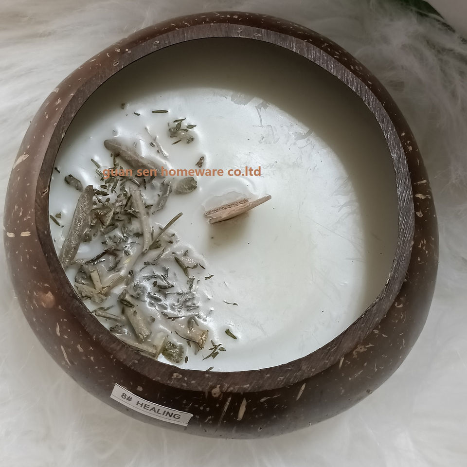 Envío Directo vela de cáscara de coco cuencos de cáscara de coco de alta calidad para decoración del hogar Etiqueta Privada vela perfumada de cera de soja orgánica