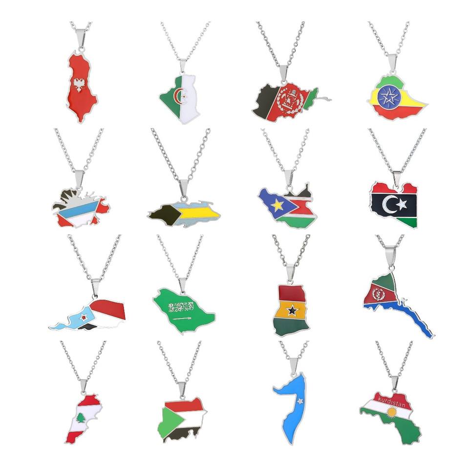 Envío Directo fábrica esmalte mundo países mapa bandera encanto cadena collar Acero inoxidable Bandera Nacional mapa colgante collar
