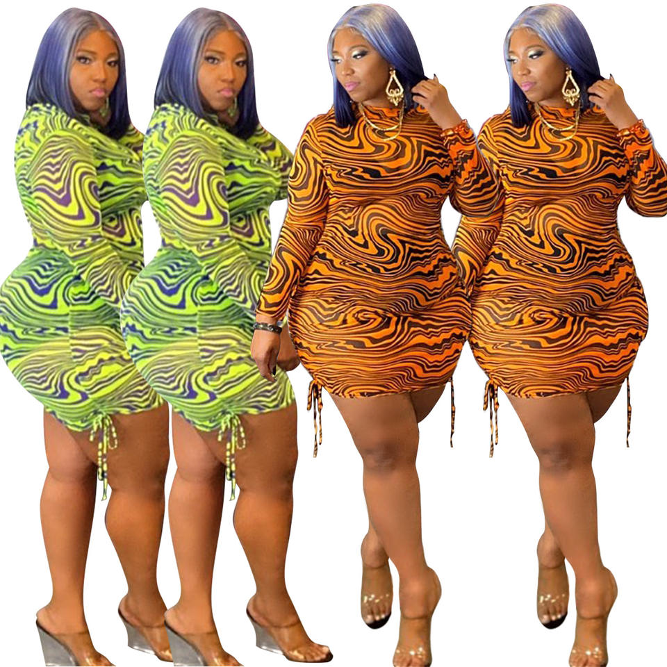 Envío Directo otoño Bodycon estampado transparente vestido de noche Sexy Clubwear de talla grande vestido caliente