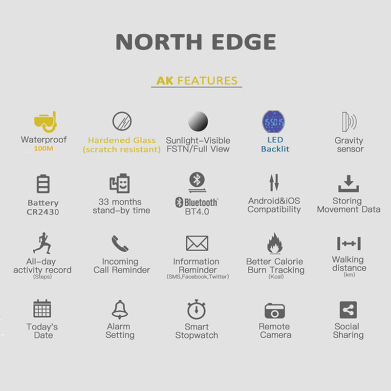 Reloj de Lujo para Hombre con Envío Directo, Resistente al Agua 100M, NORTH EDGE Deportivo, LED Digital Luminoso, Cronómetro, Compatible con IOS y Android