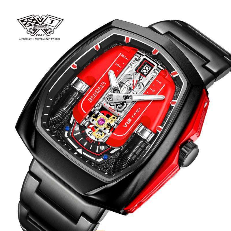 Envío Directo, Nuevo Reloj de Cuarzo con Motor V12, Luminoso, Resistente al Agua, Moderno, Cuadrado, Unisex