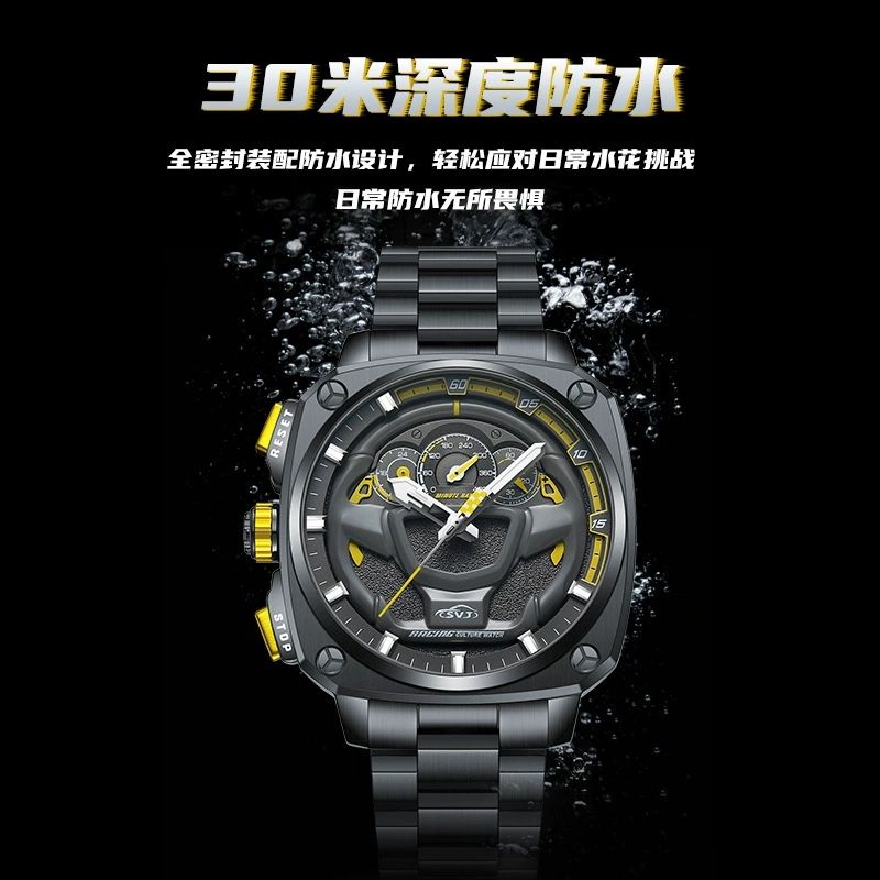 Envío Directo: Reloj de Lujo de Acero Inoxidable con Diseño Tridimensional de Volante, Resistente al Agua, para Modificación de Automóviles