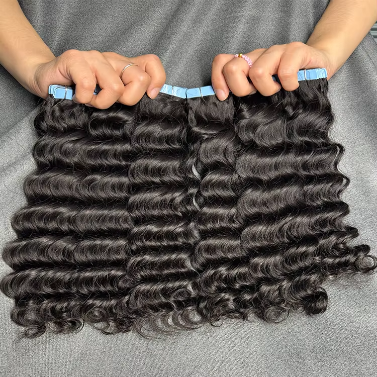 Envío de la gota Raw vietnamita onda profunda agua ondulada extensiones de cabello humano cinta en