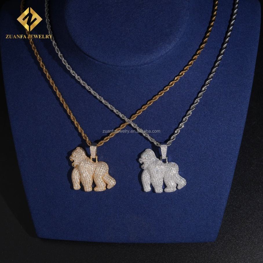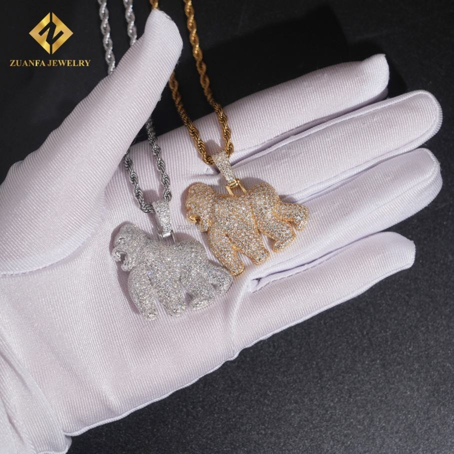 Envío Directo desde EE. UU., Stock Local, Certificado GRA, Joyería Hip Hop con Incrustaciones de Diamantes, Plata 925, Colgante de Gorila con Moissanita