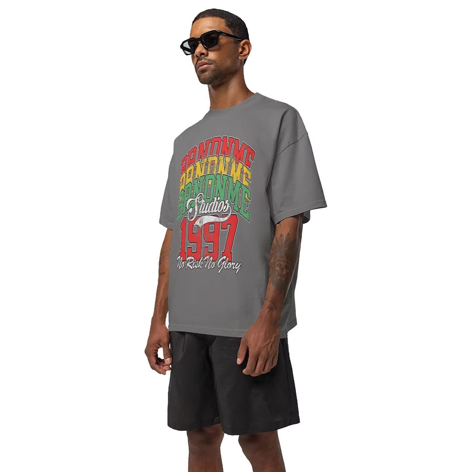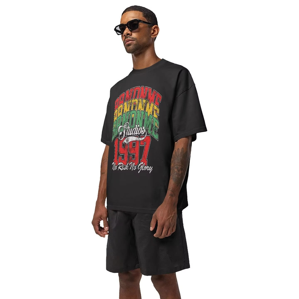 Camiseta de peso pesado antiarrugas con hombros caídos en blanco 100% algodón ropa de calle personalizada Camiseta estampada de ajuste holgado para hombres