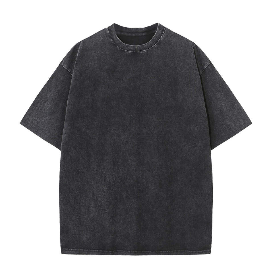 Camisetas de hombre negras con hombros caídos, estilo vintage lavado y desgastado, transpirables, tallas grandes, para verano, con lavado ácido, holgadas, para exteriores