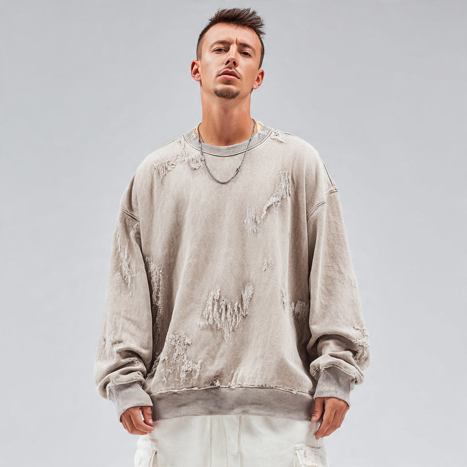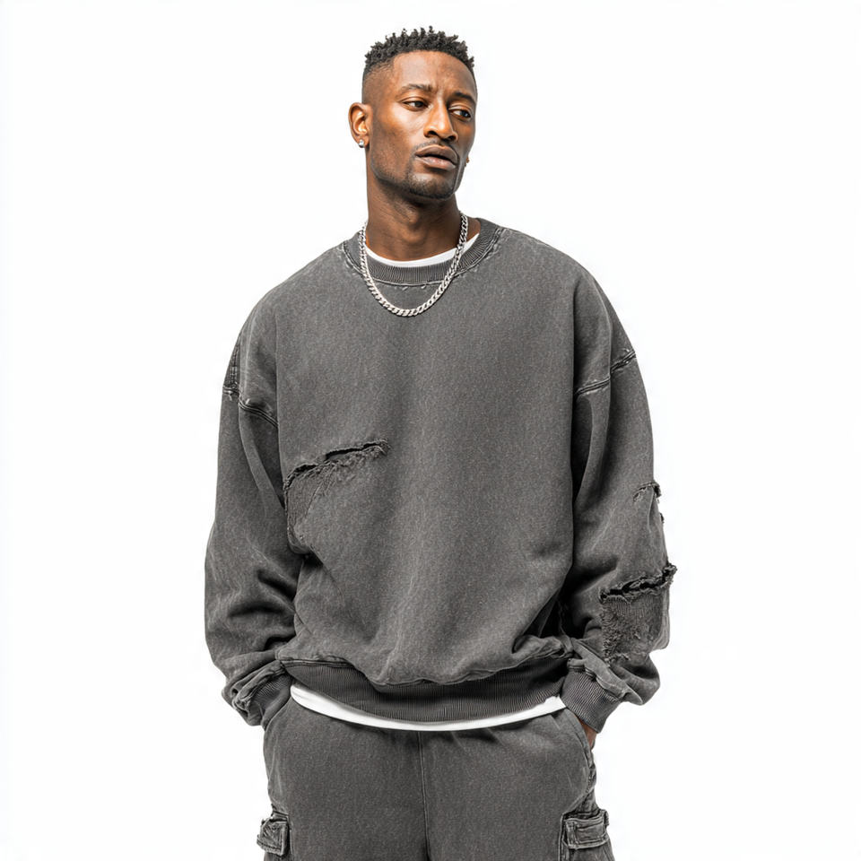 Palabras clave:Sudadera de Hombre con Hombros Caídos y Acabado Desgastado