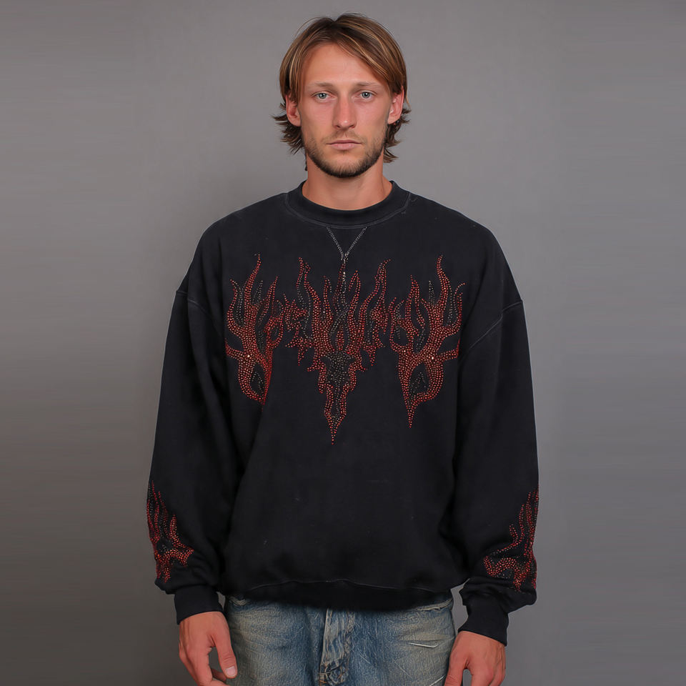 Sudaderas con hombros caídos y pedrería para hombre, cuello redondo, de vellón de peso medio