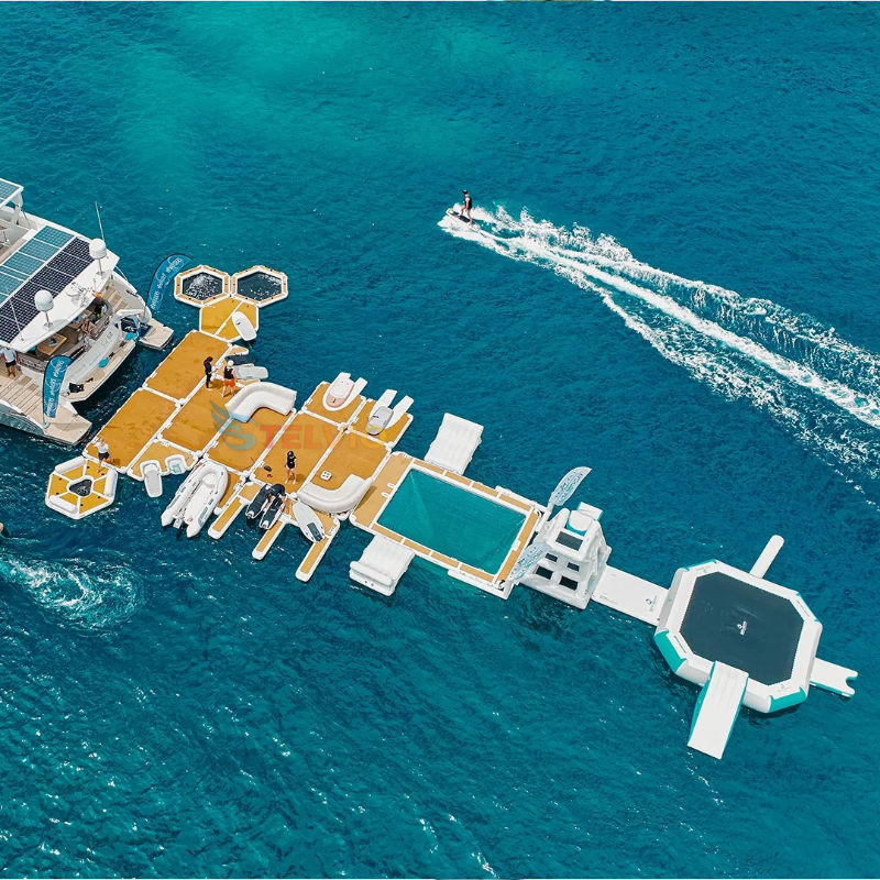 Gota puntada PVC isla flotante inflable Mesa flotante sofá muelle plataforma agua salón balsa inflable Aqua Fun Banas barco