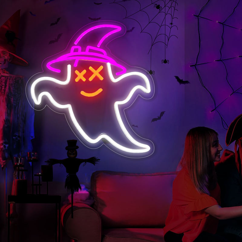 Dropship diseño libre personalizado LED signo Logo Aglowing ornamento decorativo Halloween travieso fantasma neón luces de pared para fiesta