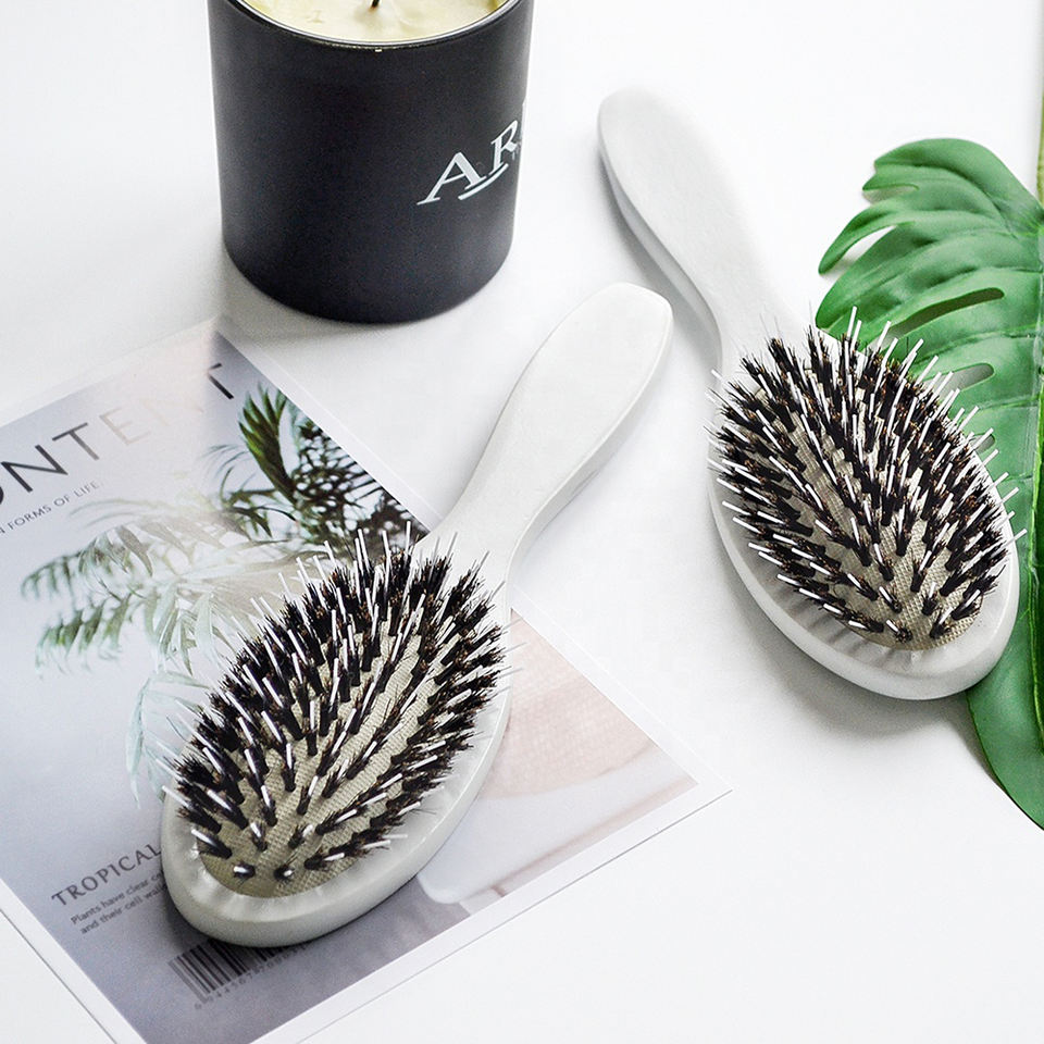 Nuevo Cepillo para Cabello 2026 con Logotipo, Cepillo de Madera de Bambú con Cerdas de Jabalí y Nylon, Cepillo Blanco para Extensiones y Pelucas, Personalizable