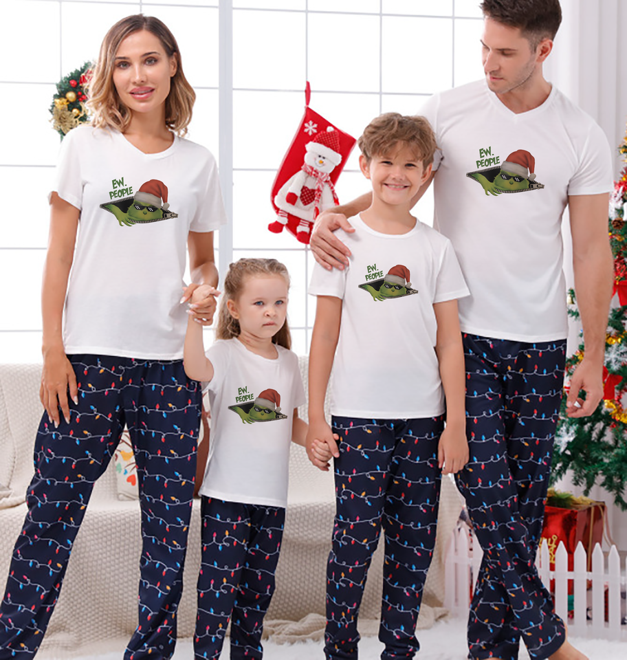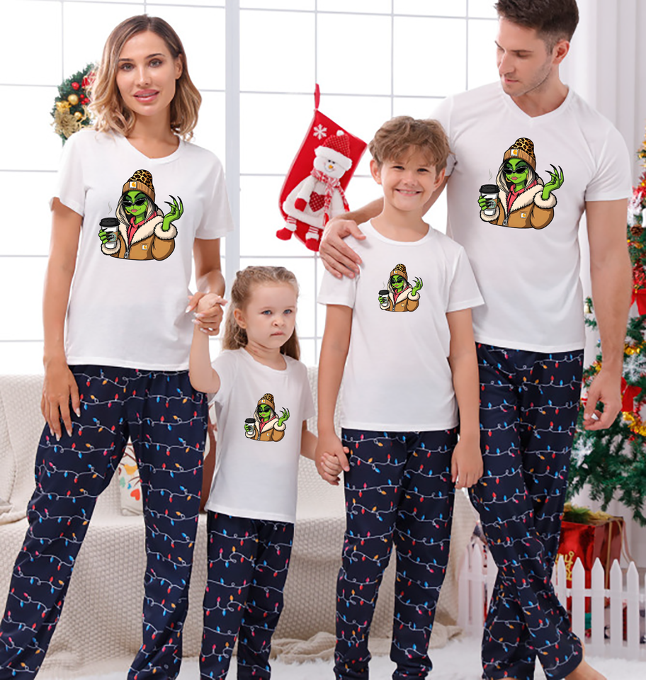 Pijama de Verano para Mujer con Estampado de Grinch, Conjunto de 2 Piezas con Camisa de Manga Corta y Pantalones a Juego de Cintura Elástica para Dropshipping