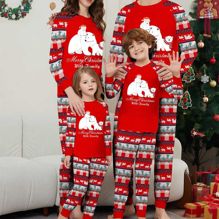 Dropshipping Nuevo Diseño Ropa Navideña con Estampado de Oso Polar Conjuntos a Juego para Parejas Conjuntos de Mamá e Hija para Pijamas Navideños