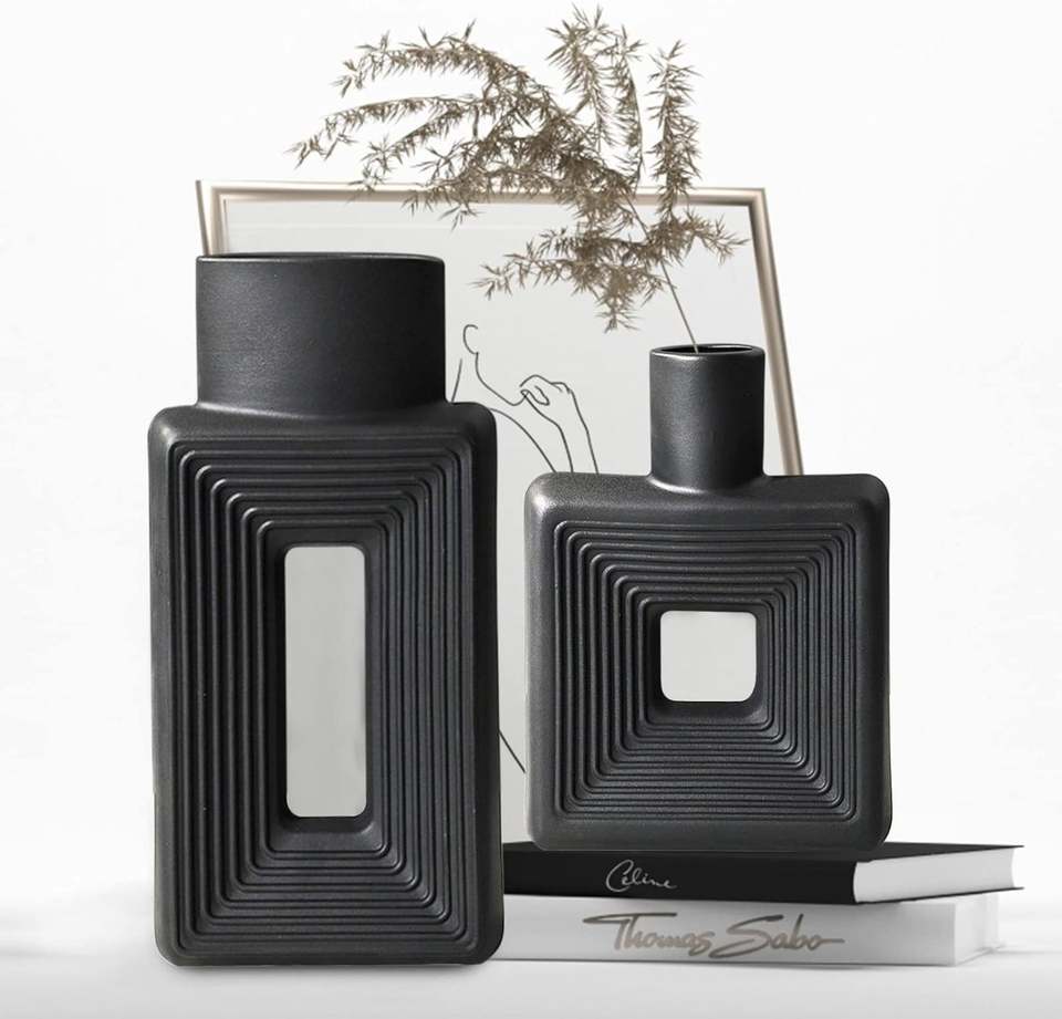 Dropshipping Shopify, jarrón de cerámica, jarrón cuadrado, decoración rústica para el hogar, estilo bohemio nórdico minimalista para jarrones de decoración de entrada