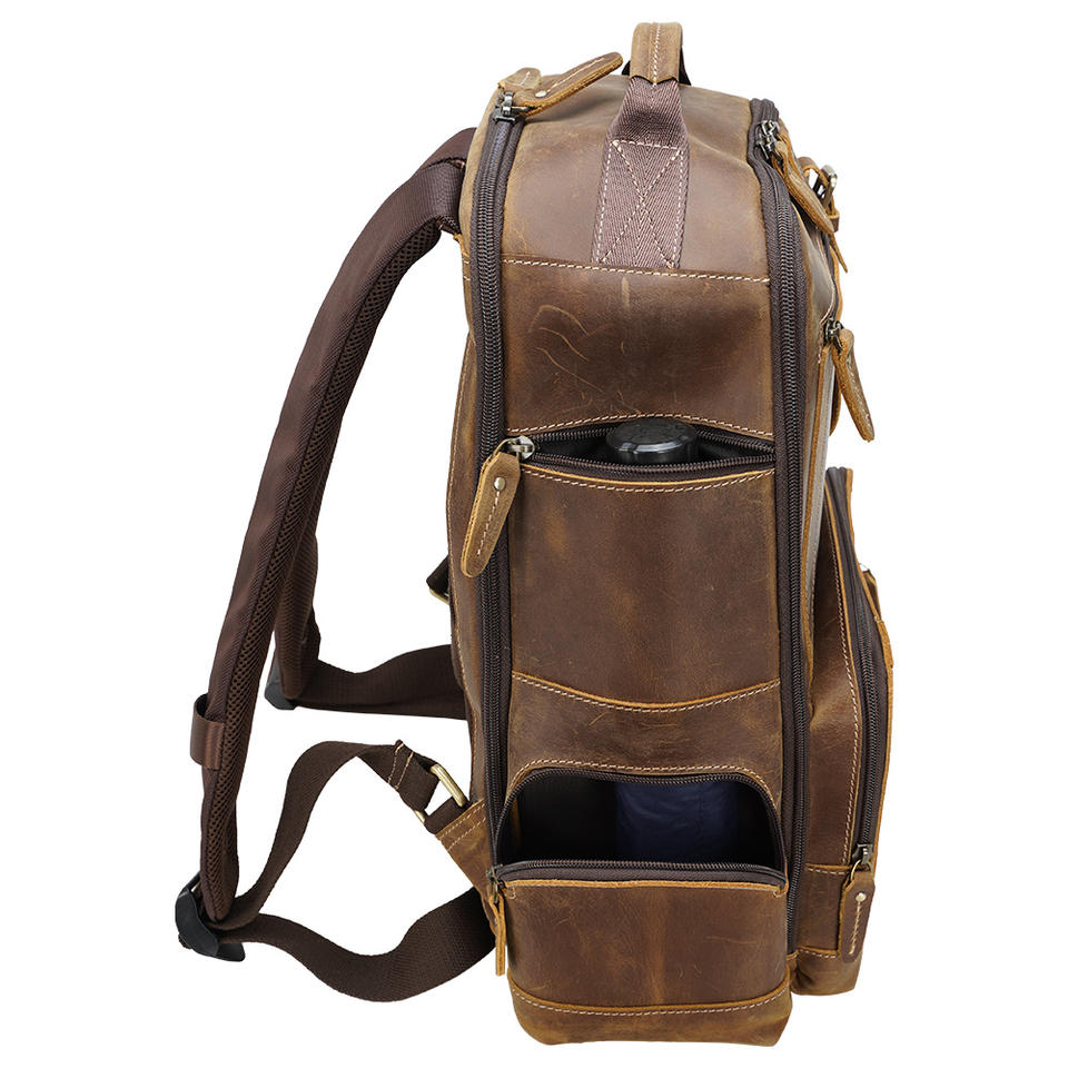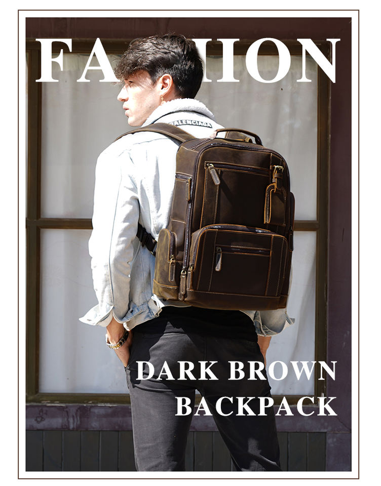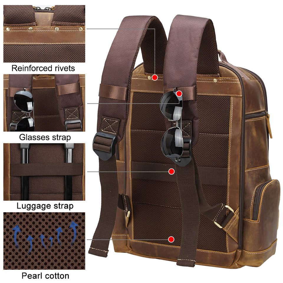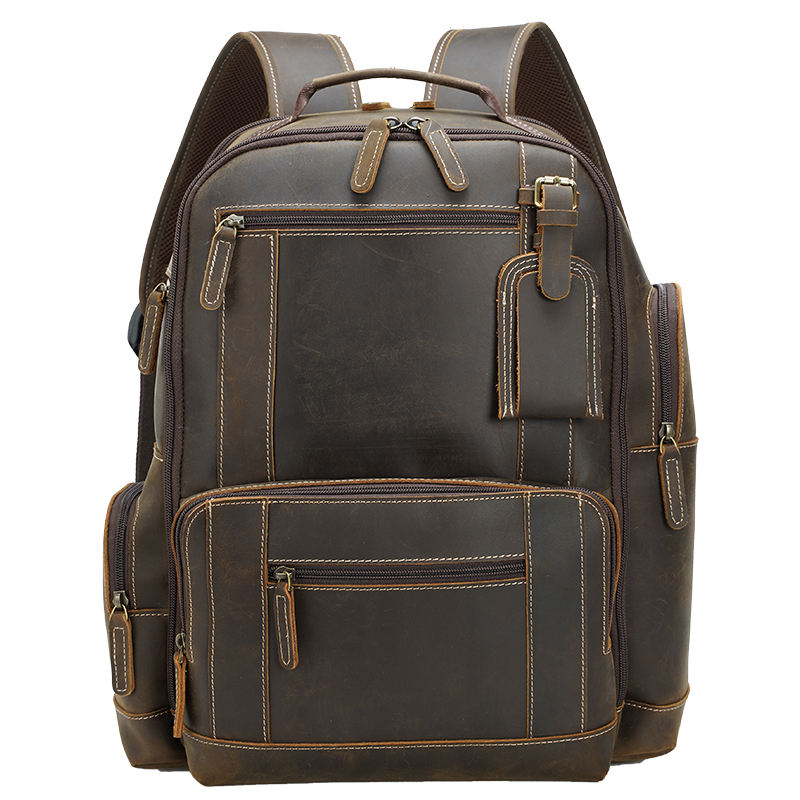 Mochila De cuero marrón de estilo Retro para hombre, bolsa para ordenador portátil de cuero genuino, para viaje, Droshipping