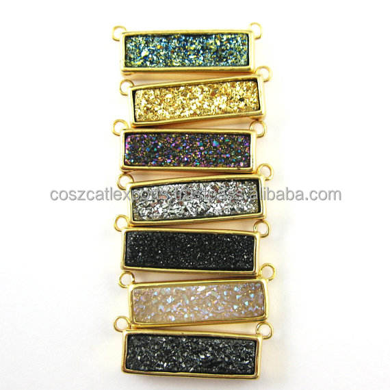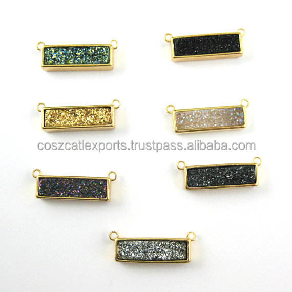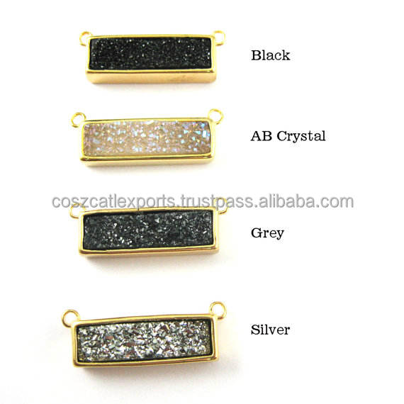 Colgante Personalizable de Plata de Ley 925 con Barra Rectangular y Ágata Druzy, Bañado en Oro y Rodio, Ideal para Fiestas y Eventos de Moda