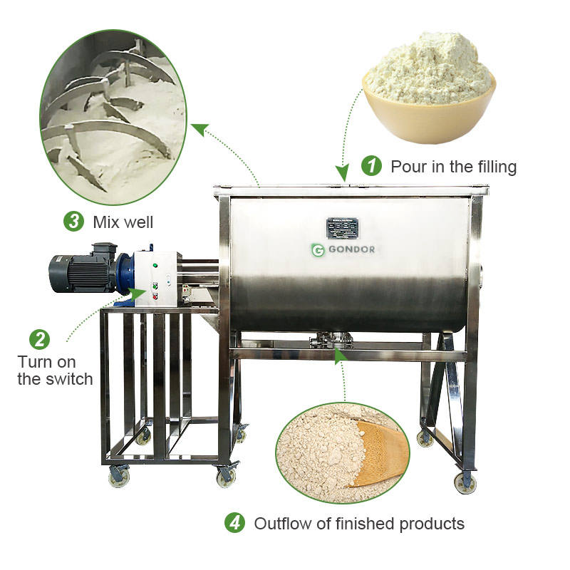 Mezclador de Polvo Horizontal de Doble Cinta Dry Blend Paddle de 1000L para Productos Químicos con Motor y Rodamiento de Alta Productividad