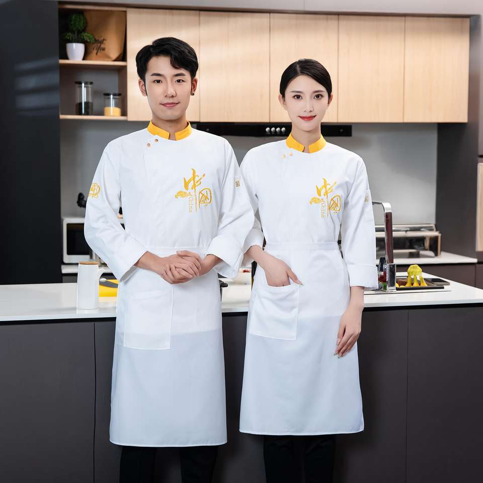 Seco absorbente de sudor a prueba de aceite de manga larga estilo chino ropa blanca vestido uniforme para Chia tienda de comida uniforme de Chef italiano