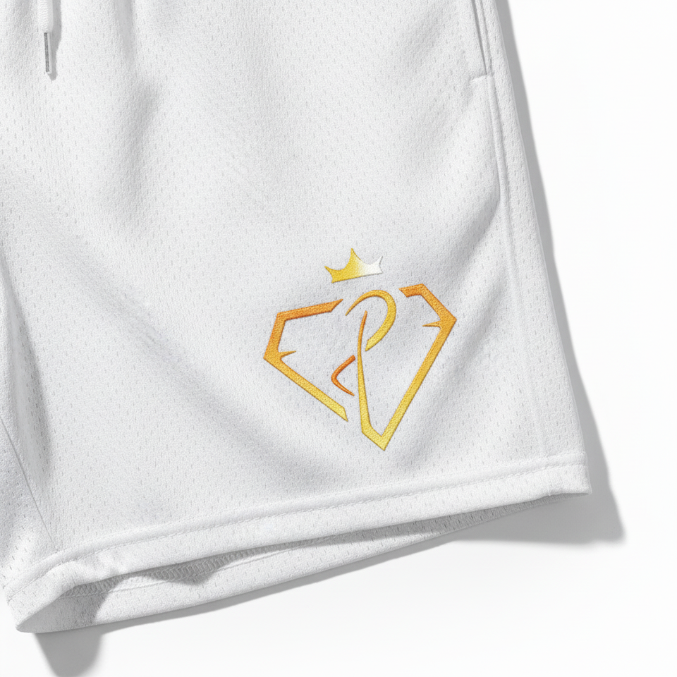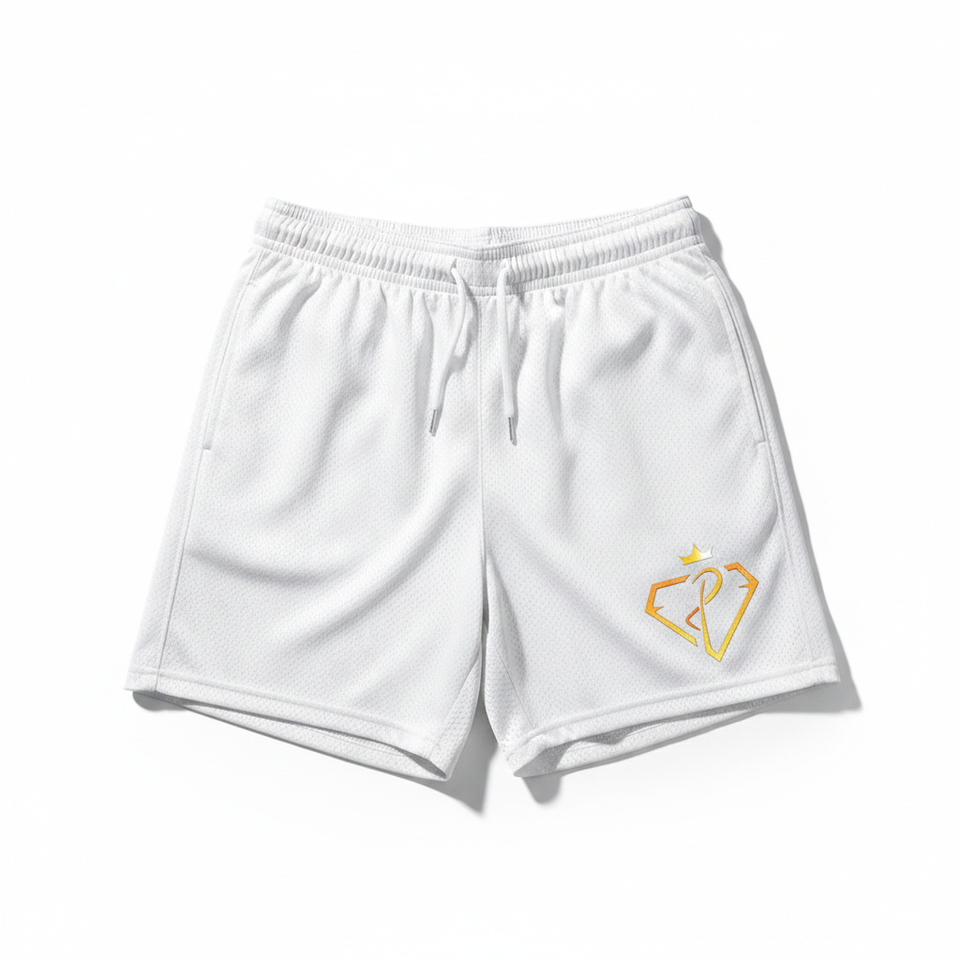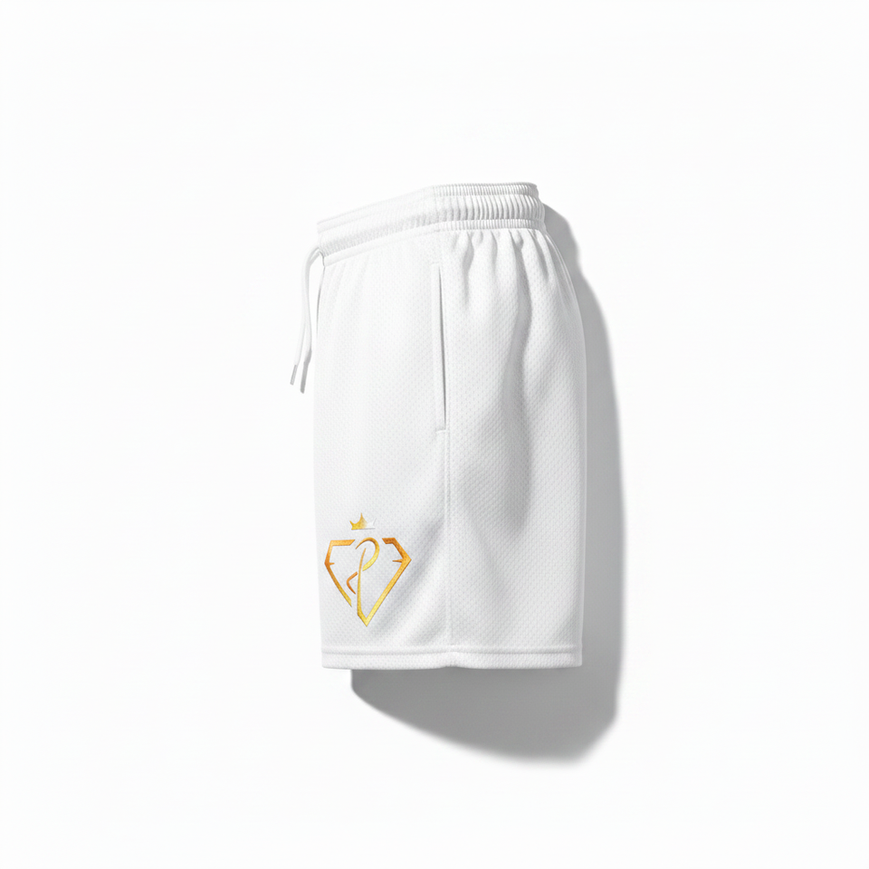 Pantalones Cortos Blancos de Malla 100% Poliéster, Secos y Cómodos, con Cintura Elástica y Cinta de Punto a Rayas