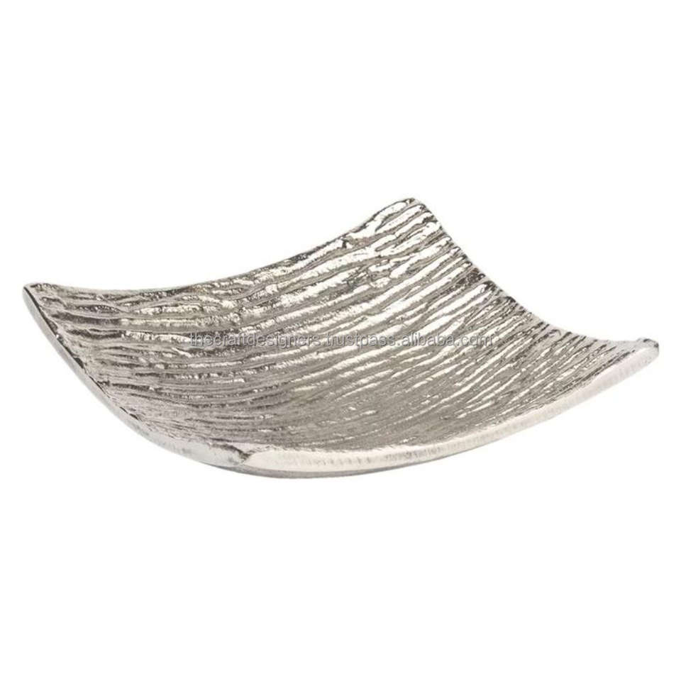 Dryfruits Caramelos Plato para servir Metal decorativo 4 Bandeja de corte de esquina Bandejas de aluminio plateado Decoración para el hogar Nuevos accesorios Bandeja de frutas