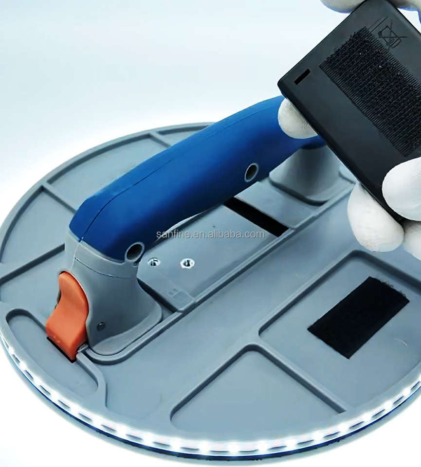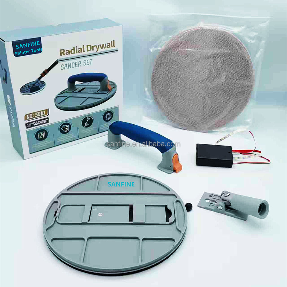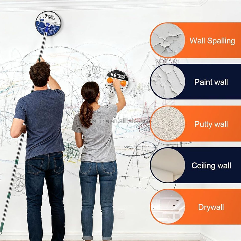 Lijadora de paneles de yeso de 9 pulgadas, lijadora radial con 6 lijas, mango de goma y rosca hembra para limpieza y pulido de paneles de yeso y madera