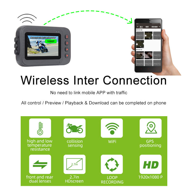 Impermeable, Visión nocturna, WDR, Control remoto, A todo color, Sensor G, Parque de modo, Grabación en bucle, Construir en WiFi, Detección de movimiento, Control de App, La voz de interacción, Construir en GPS, De emergencia de Accidente de bloqueo, Adas